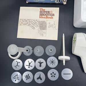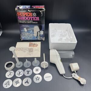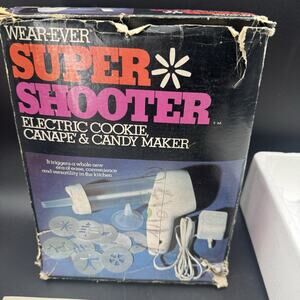 The Vintage WearEver 70001 Super Shooter Electric Cookie Maker is a classic round-shaped cookie press that is perfect for all occasions, especially during the holiday season. Made of durable plastic in a standard size, this white-colored cookie maker by WearEver is easy to clean and comes complete with its original box. With its festive Christmas theme and convenient features, this electric cookie maker is sure to add some holiday cheer to your baking repertoire.
