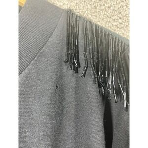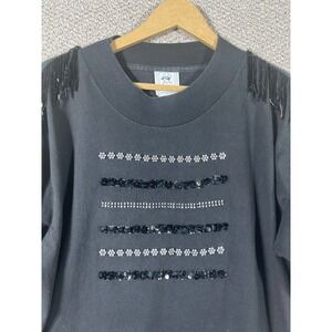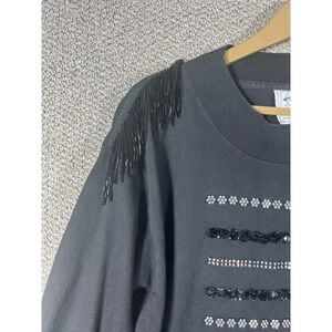 Vintage Wearable Art Blouse Womens Black Beaded Rhinestones Sequins Puff Sleeves Casual