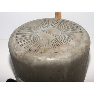 Vintage Wearever 6 Quart Stockpot Pre Owned Shows wear, please check pictures, small part of one of the handles is chipped but is secure (last picture.) Has open and closed on top of lid to release steam we assume. Thank you.