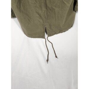 This vintage weatherproof canvas utility jacket combines style and functionality. Perfect for outdoor chores, it features a durable design with a hood and is tailored for a men's XL fit. Ideal for staying warm and dry in various weather conditions.