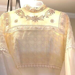 * Lace bodice and on top and the cuffs of long sleeves.
