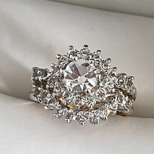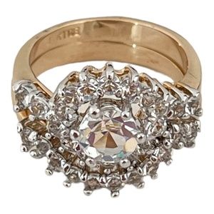 Vintage Wedding Ring Set Cubic Zirconia 14K Yellow Gold Electroplate