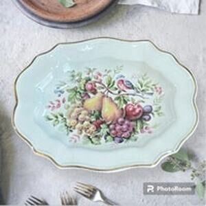 Porcelain Dish Enoch Wedgewood Tunstall Avon Bird Fruit 22K Gold Trim Vtg 1976