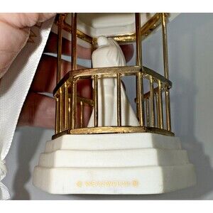 Ornament is in good condtion, no chips or cracks. The Vintage Wedgewood Wedding Gazebo "Our 1st Christmas Together" Ornament 2002 is a small, cream/gold porcelain ornament featuring a bride and groom design. Manufactured by Wedgwood in the United Kingdom, this vintage ornament from 2002 is a sentimental collectible for a couple celebrating their first Christmas together. Measuring 5 inches in height and 2.5 inches in width, this original ornament is a charming addition to any holiday decor or wedding anniversary celebration.