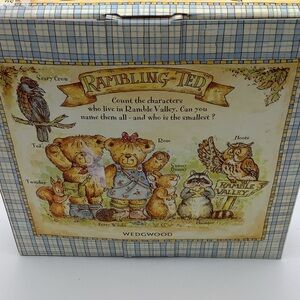 Vintage Wedgwood “Rambling Ted” Children’s battery operated 8” wall clock with blue hands. Each number is represented by the number of adorable animal characters. Pre-owned but appears unused.