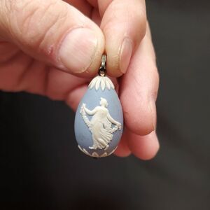 Vintage Wedgwood Jasperware Blue White "Dancing Hours" Egg Pendant