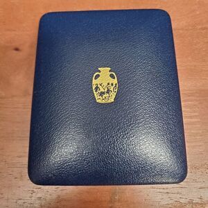 Vintage Wedgwood Jasperware Blue White "Dancing Hours" Egg Pendant comes with the purple lined gift box.