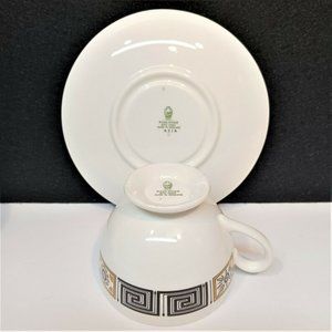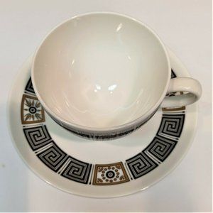 Vintage Wedgwood Tea Cups & Saucers (Set of 4) - Black and Gold Greek Key Motif