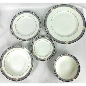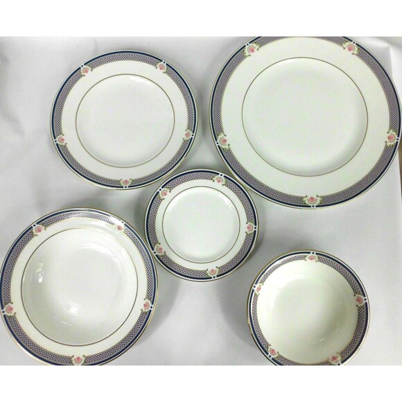Vintage Wedgwood Waverley 5 Piece Place Setting Bone China England Plate Bowl