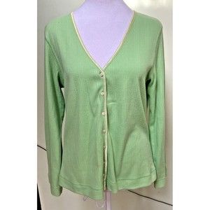 Vintage Weekend Traffic Sz L Green V-Neck Button-Front Long Sleeve Cardigan Top