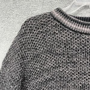 Vintage Weekends Sweater Mens Large Crewneck Pullover Gray Retro open Knit