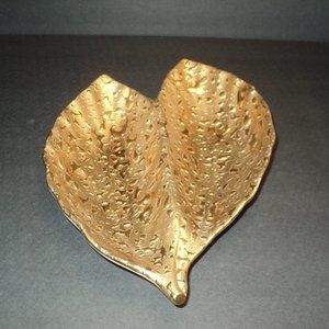 Vintage Weeping Bright 22K Gold Candy Dish Leaf 10" x 6 3/4" 1960 Made in USA