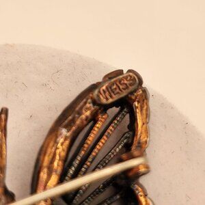 This exquisite vintage butterfly brooch showcases detailed craftsmanship with amber and green rhinestones. A charming addition to any antique jewelry collection.