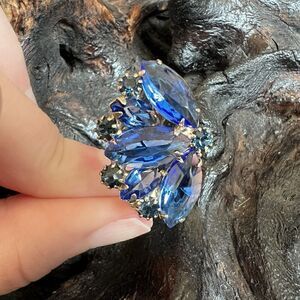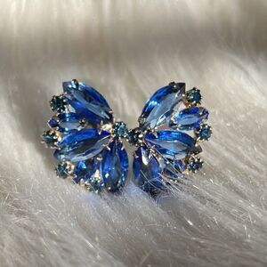 Vintage Weiss Butterfly Wing Clip on Earrings Blue Marquise Cut Elegant Unique