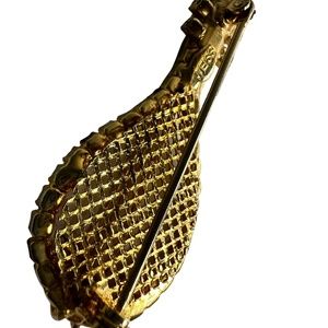 Vintage Weiss Clear Red Rhinestone Guitar Bango Gold Tone Brooch