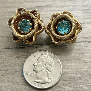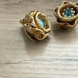 Vintage Weiss Earrings Gold and Blue Stone Woven Clip Ons—Amazing Condition!
