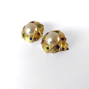 Vintage Weiss Gold Pearl Rhinestone Clip Earrings