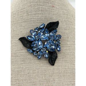 Gorgeous Vintage Weiss Japanned Light Sapphire Double Tiered Statement Brooch in excellent Vintage Condition. Does not appear to have been worn much at all.