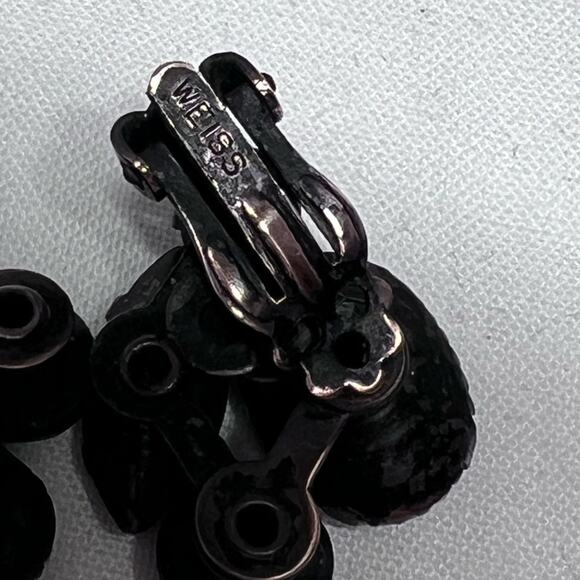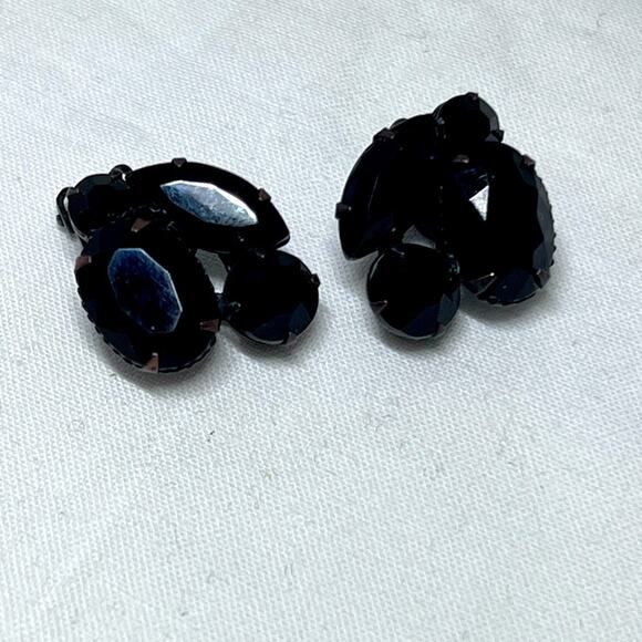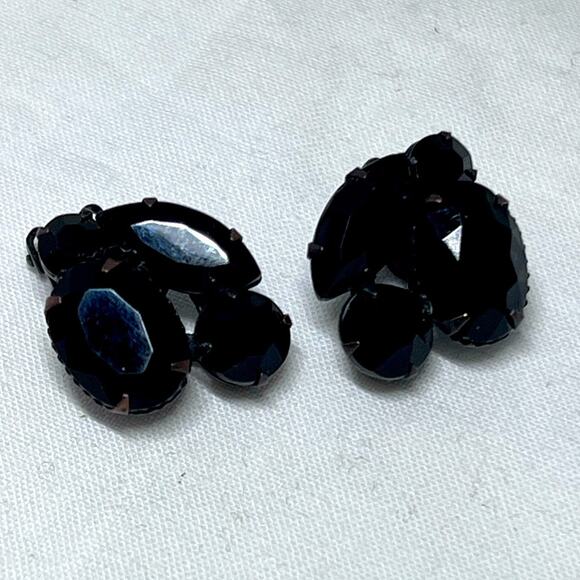 Vintage Weiss Jet Black Clip On Earrings Prong Set MCM Style