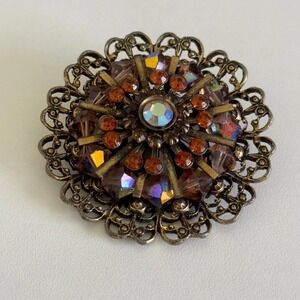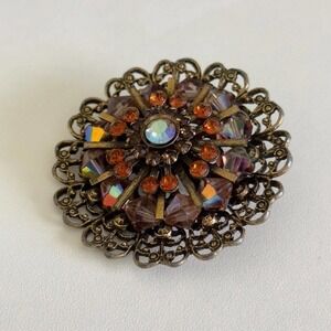 Vintage Weiss Signed Amber Orange AB Rhinestone Crystal Statement Brooch Pin