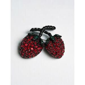 Vintage Weiss Signed Double Strawberry Brooch Pin Back Jewelry Crystals
