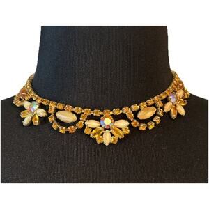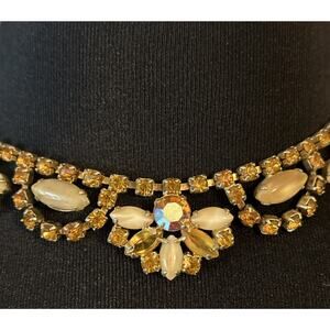 Vintage Weiss Signed Gold Tone Amber Rhinestone Choker Necklace 15.5"