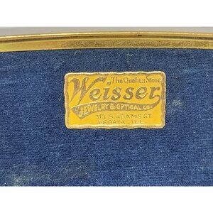 This vintage Weisser eyeglass case boasts a luxurious blue velvet lining and elegant gold-tone trim. Its exterior is crafted from a textured black material, providing a refined aesthetic. The case's durability and classic design make it an excellent choice for securing your eyewear in style.