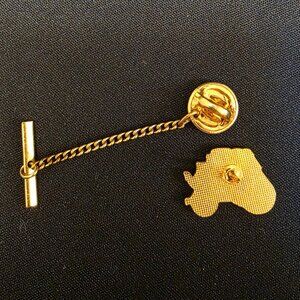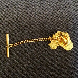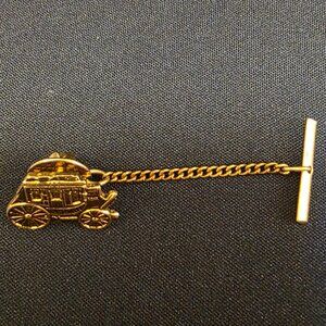 Vintage Wells Fargo Stage Coach Tie Tack / Pin with Chain - Gold Tone