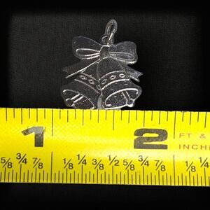 Vintage Wells Sterling 925 Silver Wedding Christmas Bells Bow Charm Pendant