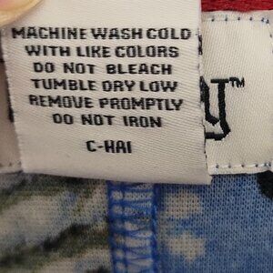 Polyester, measurements are 21" pit to pit, 20" waist, 24" sleeve and 61" length, zipper works, pockets, tapered ankle, lightweight, super cute, good condition and quality