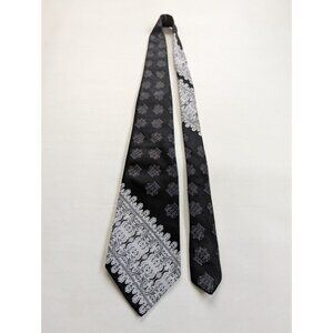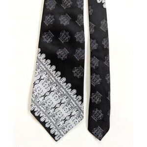 Vintage Wembley Wemlon Crown Print 70's Black & Silver Necktie