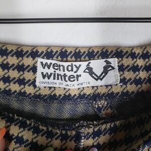 Vintage Wendy Winter Houndstooth Pants 10 Navy Blue Beige Check 70s