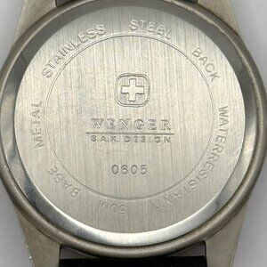 Vintage Wenger 2005 SAK Design Round Unisex Black Leather Strap Watch Working