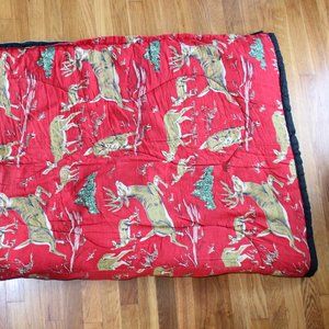 Vintage Wenzel Sleeping Bag Black with Flannel Deer Lining 73" x 31" Zipped