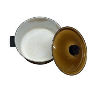 Bring timeless mid-century charm to your kitchen with this Vintage West Bend Brown Enameled Casserole Pot with Lid. Crafted with durable enamel over metal, this classic piece is built for both function and style. The rich brown finish gives it a warm, retro appeal that looks just as good on open shelves as it does on the dinner table.