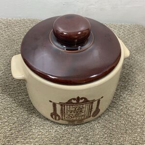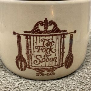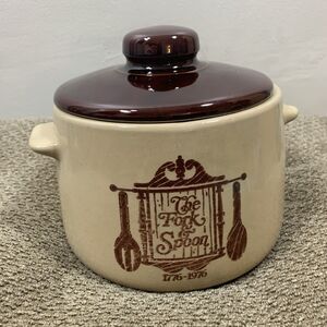 Vintage West Bend Colonial Stoneware Fork & Spoon Bean Pot Crock w/ Lid