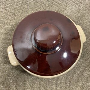 Vintage stone west crock with lid. Cute brown and cream colors. Has some discoloration. See photo.