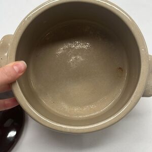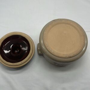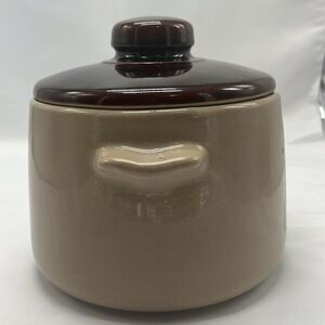 This is a great crock! It holds about 2 quarts. It is about 8 inches tall and 7 inches in diameter. There is a small mark of brown paint, that looks like it got smeared when it was originally painted. Please see last picture.