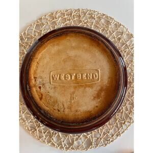 West Bend USA Vintage Brown Glazed Stoneware Crock Pot Aluminum Lid. No chips or cracks. Light signs of wear in line with age. A wonderful piece with MCM feel.