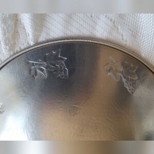Vintage West Bend Hammered Aluminum Serving Plate Bowl Grapes Leaves