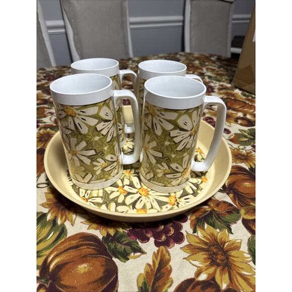Vintage West Bend Thermo Serv Daisy Set Of 4 Cups And Tray Mid Century Modern