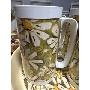 This vintage West Bend Thermo Serv Daisy set of 4 cups and tray is a classic example of mid-century modern design. Made of durable plastic, these cups and tray feature a retro floral pattern that adds a touch of nostalgia to any collection. The West Bend brand is known for its quality products, making this set a desirable addition for collectors of vintage, retro, and mid-century items.