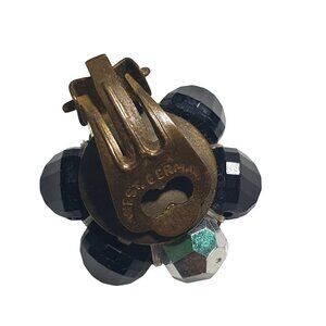 Elegant vintage clip-on earrings handcrafted in West Germany. Featuring black beads, aurora borealis accents, and a floral design, these earrings radiate timeless charm. Durable clip-back closure.