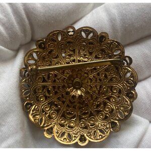 Vintage West Germany Black Cameo Brooch Earrings Set Gold Tone Regency Victorian