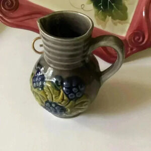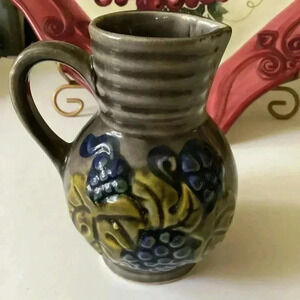 Vintage West Germany Ceramic Pitcher Wine Jug Grapes & Leaves Scheurich Kiramic