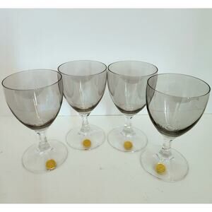 Vintage West Germany Smoke Gray Crystal Goblets Set of 4 Stemware