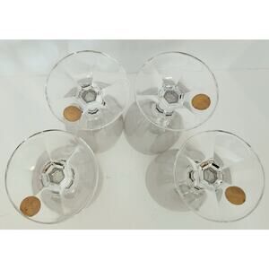 Set of 4 vintage crystal goblets in smoke gray with elegant hex-cut bases. Each retains its original sticker: “CRYSTAL MADE IN WEST GERMANY.” Classic mid-century glassware with light age wear (minor scuffs only). No chips or cracks. Perfect for collectors, display, or vintage table settings.