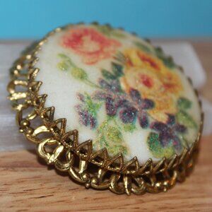 Vintage West Germany Sugar Glass Floral Flowers Gold Tone Brooch Pin
