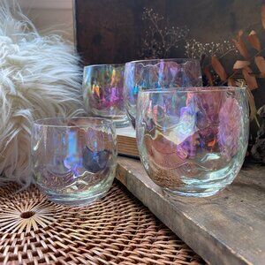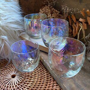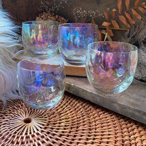 Vintage West Virginia Glass Iridescent Drape Loop Optic Set of 4 Glasses Mermaid