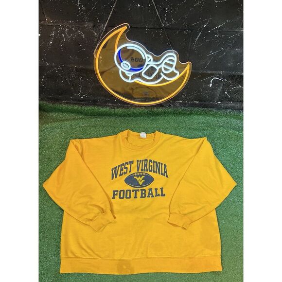 Vintage West Virginia Mountaineers Sweatshirt Men XXL 2XL Yellow Crew Neck WVU